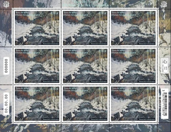 Le timbre à 3,10 € "Ruta del Ferro", oeuvre d'Arnau Sanchez Campamà, émis le 9 avril, a été imprimé en feuilles de 9.